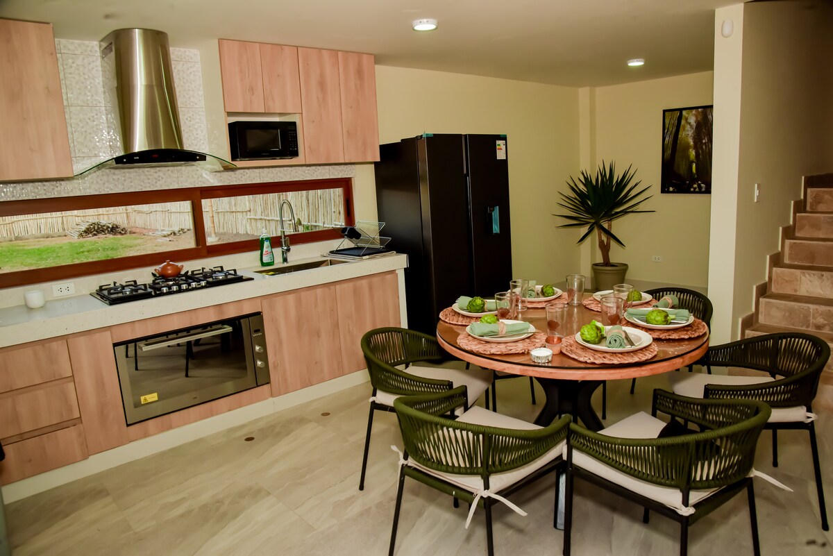 The house is located within a totally private estate. The facilities and pool are for the exclusive use of the guests and family of the hacienda. This makes for a harmonious family coexistence with the hosts. This way you can enjoy the benefits of the farm, such as seasonal fruit trees and medicinal plants. It's the ideal environment for guests who bring their pets. Relax with the whole family in this home where the tranquility is breathable.