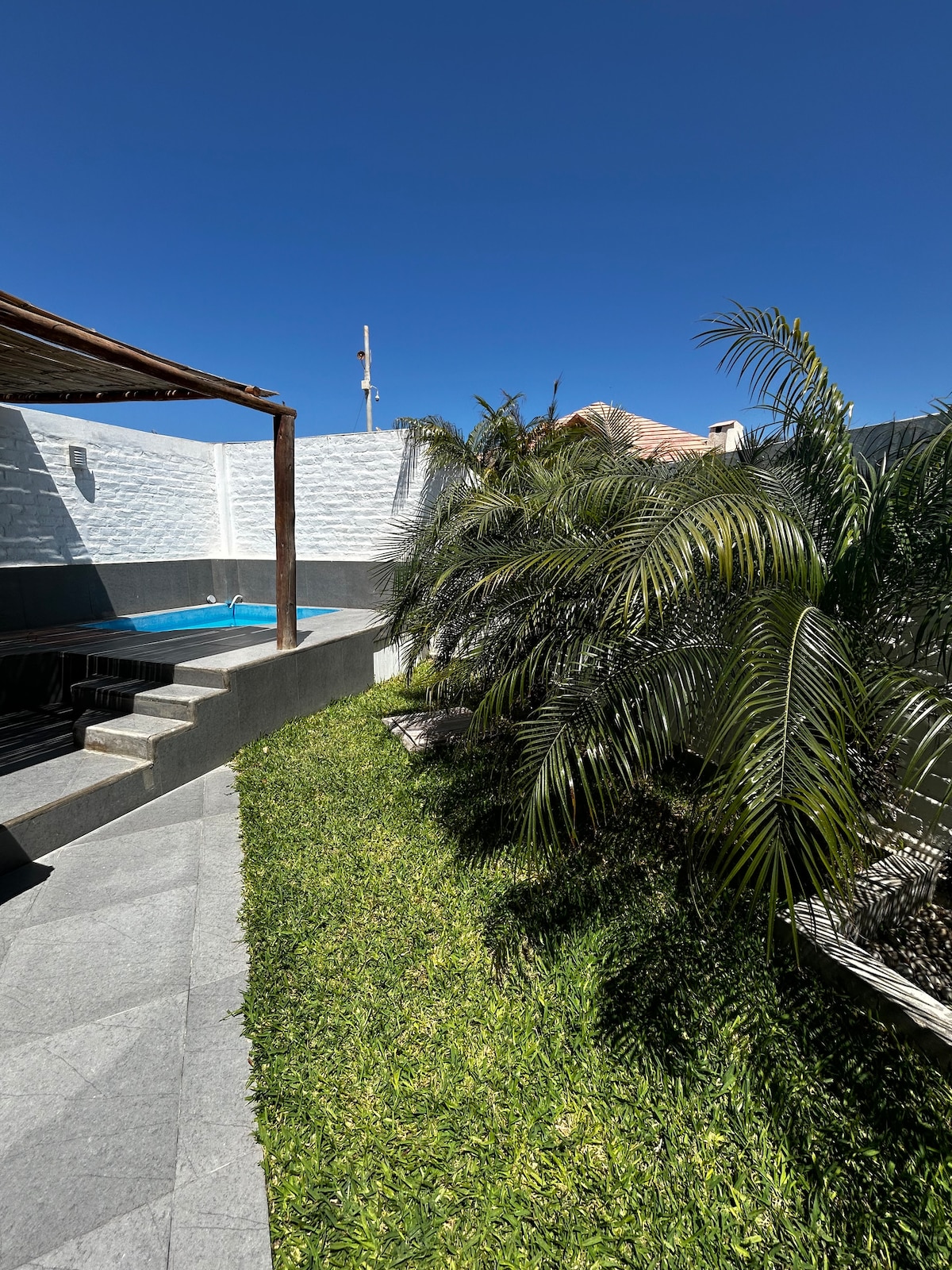 Modern 2 story plus terrace beach house. Over 260 square meters. Parking for 4+ cars, swimming pool, BBQ area, huge kitchen and big living space. 5 minute walking distance to El Chaco where you find all the restaurants and bars. 5 bedrooms. 1 king bed, 3 double beds, 5 twin beds (in bunks). Minimum 2 night stay or extra charge for one night. 3 night min for certain holidays. Dos noches alquiler mínimo o una noche posible con cargo adicional. Tres noches minimo durante ciertos feriados.