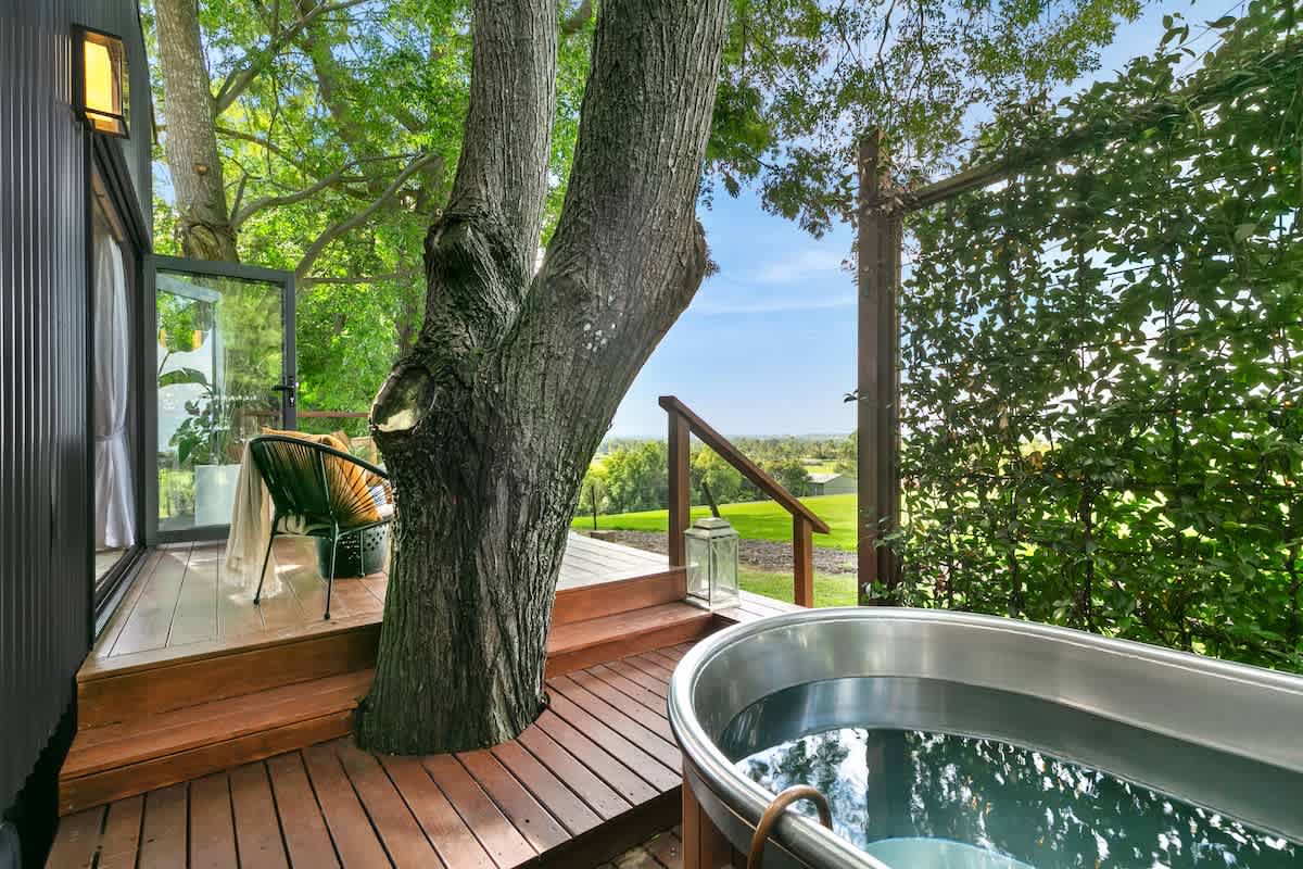 Reconnect with nature at this unforgettable escape. Just a short drive from Sydney in the rural outskirts of the Hills District, this beautiful location speaks for itself with endless views of the Hawkesbury River across to the Blue Mountains. Villa 37 is fully self contained with split air conditioning, a kitchenette featuring convection microwave, refrigerator, benchtop hotplate, cooking equipment, excellent bathroom facilities along with two outdoor bathtubs with spectacular views.
