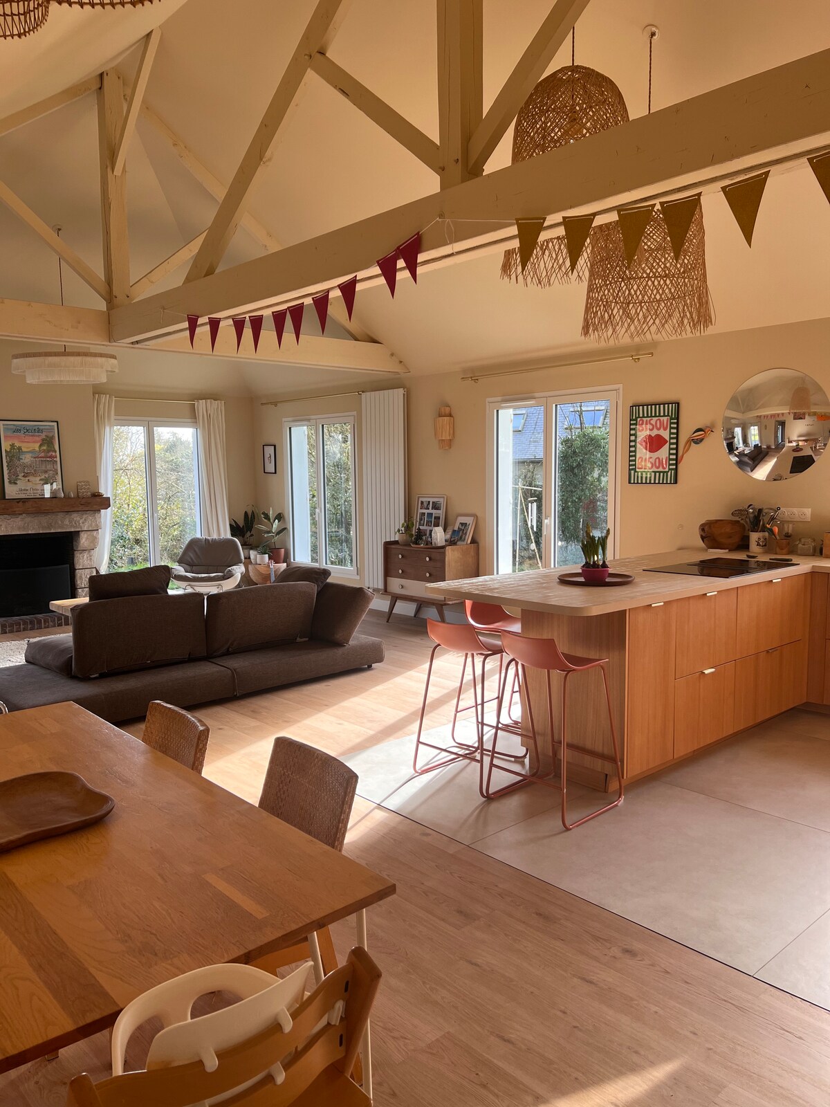 South Brittany. House facing the sea, coast path at the end of the garden and beach bellow. Only thing you hear is the sea. Mind-blowing sunsets. A long private driveway (200m) separate the house from the road. Easy living house with a pro kitchen.