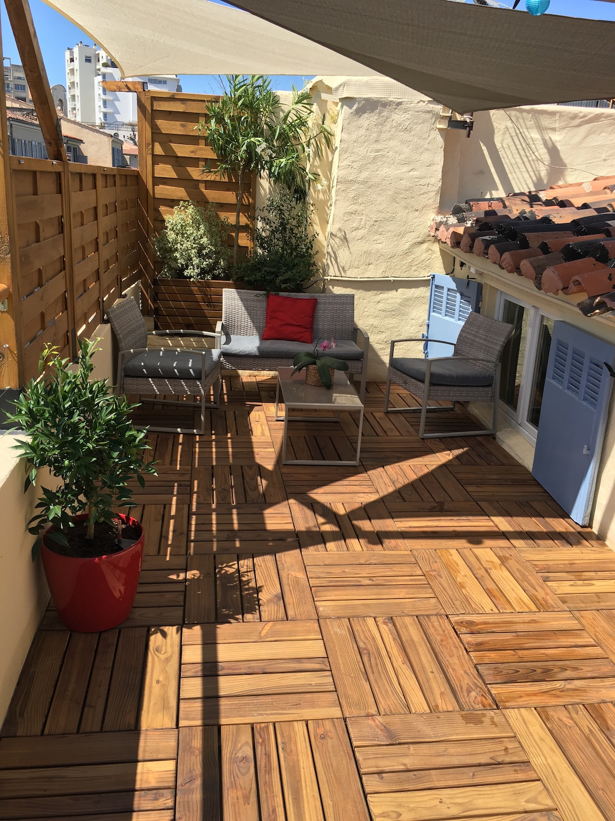 Spacious accommodation with exceptional views of Marseille, next to the magnificent Notre Dame de la Garde church at the top of the hill. It is located 20 minutes' walk from the Corniche and beach as well as the old port city center. Your nights will be under the stars and you will be awakened by the bells of the basilica. A 50 m2 terrace to have your breakfast and meals above the city and the sea. Parties and noise are forbidden between 11 p.m. and 7 a.m. as well. Thanks for the neighborhood.