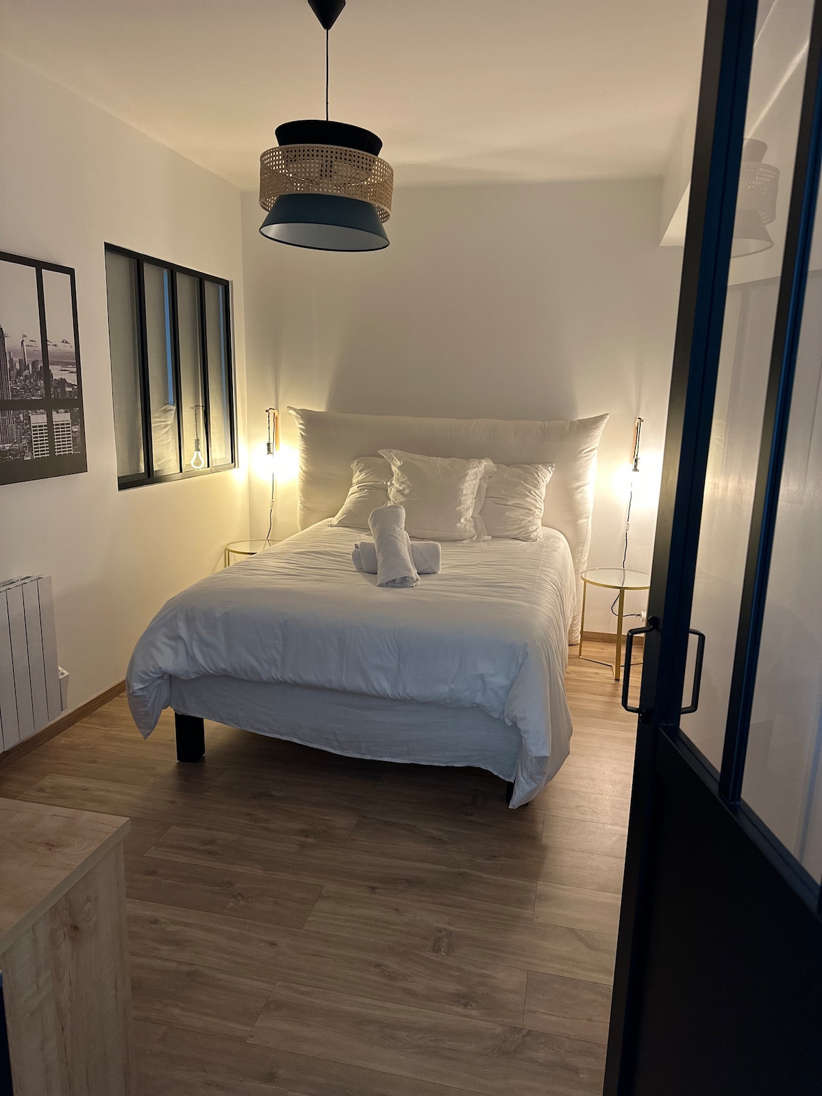 Enjoy our studio with south-facing balcony and Balnéo bathtub at the Marina. It is equipped with a real 160 x 200 bed with linen sheets, Wi-Fi, connected TV, equipped kitchen with dishwasher, organic coffee machine with grinder, organic tea and soda stream, 1 free bottle of fresh local cider, Wi-Fi. Relaxation guaranteed in the bathroom equipped with a spa bath for one person. The toilet is separate. Free parking is available at the foot of the building.