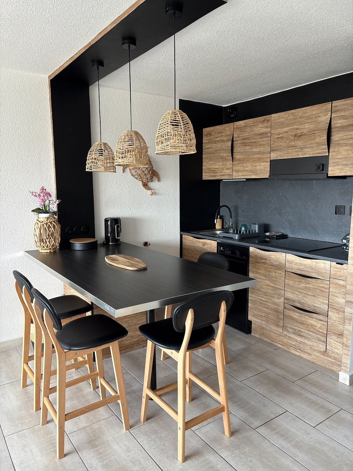 This renovated accommodation (1st floor) with air conditioning will offer you a great vacation that can accommodate 6 people. Sheets and towels are provided. Free baby pack: bed, stroller, high chair⊠Closed and secure residence, private bicycle room. Private parking for your vehicle. 4 beaches within a 5-minute walk (Le MÎle, La Dalle, La Conque and La Plagette), all in a beautiful cliff district. You are 100 m from the port and 7 minutes from the boulodrome (pier).