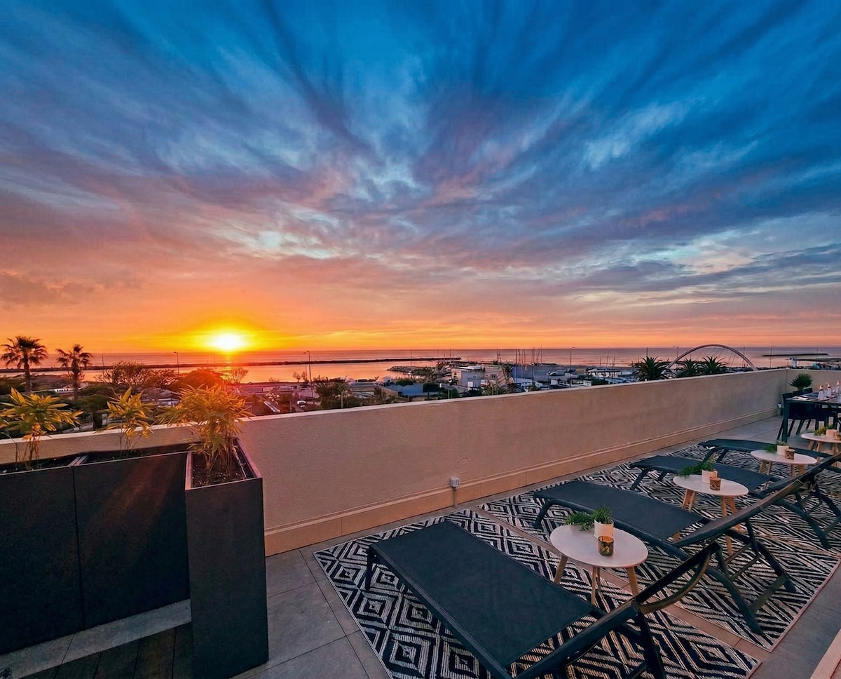 Welcome to the Solarium au Bord des Flots, a charming duplex ideal for a couple's stay, with direct access to the beaches of Corniche, Lazaret and a 5-minute walk to Lido Beach. Located in the Le Castlemare residence in Sète, this property offers you a sea view from its solarium, which is accessible from the bedroom. For more tranquility, enjoy the terrace surrounded by trees overlooking the living room of the apartment. The space is equipped with reversible air conditioning.