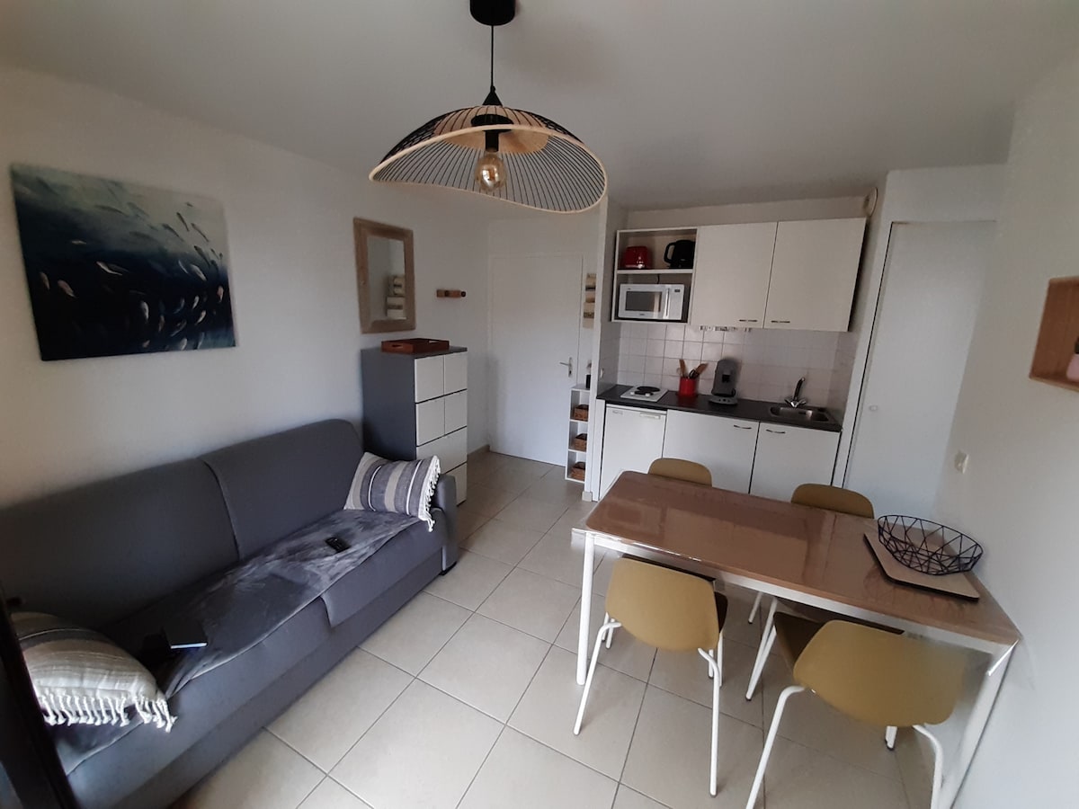 Bright 20 m2 studio, ideally located a 5-minute walk to the sea, beach bars and restaurants and the city center. Accommodation for 2 people, with equipped kitchen, Wi-Fi, connected HD TV. The accommodation has just been fully renovated, everything is new from floor to ceiling! You'll be our first guests hosted! The price of the cleaning fee includes all linens: duvet covers, fitted sheets, pillowcases, blanket as well as towels and bath mats