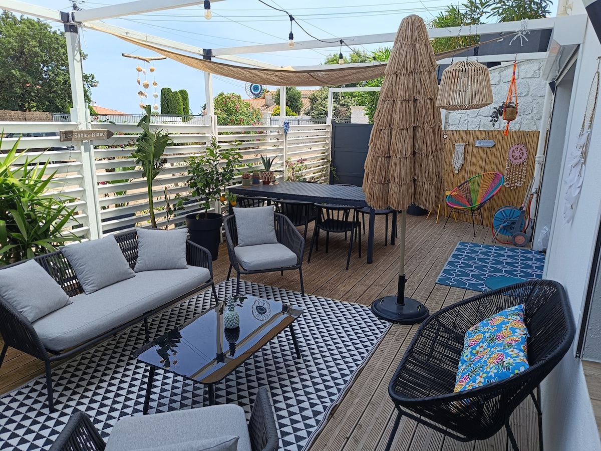 [⭐️ Starred accommodation ⭐️] Bright and newly renovated apartment with quality materials and furniture. Close to the sea, the nature base, the SNCF train station and the city center, its location in a quiet and residential area will seduce you. Garden with exotic notes, pergola with adjustable slats, possibility to park your car in the garden or sunbathe in the sun. Linens and towels included at no extra cost, toilet paper and coffee in advance.
