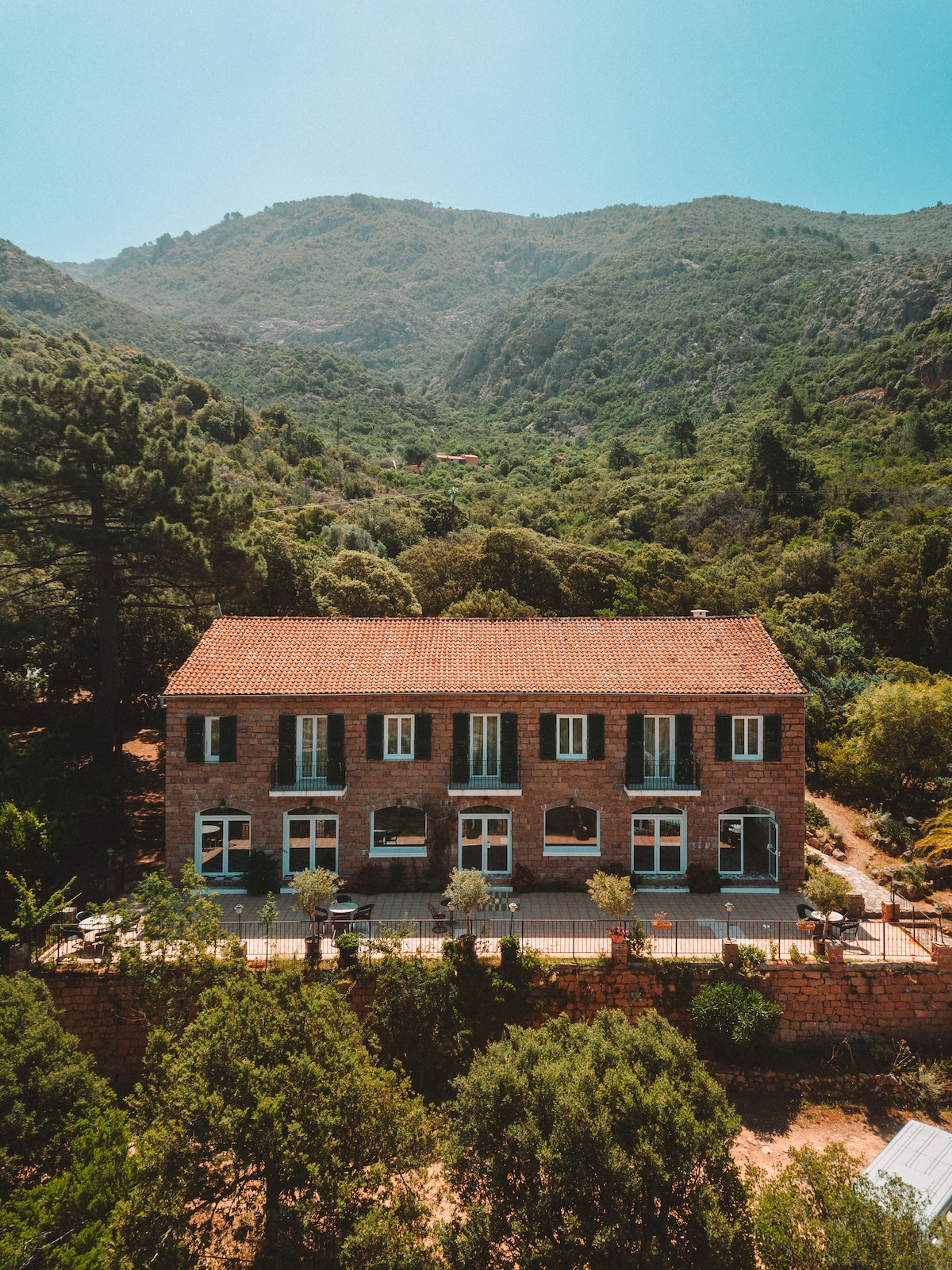 Welcome to La Bergerie, an eco-lodge nestled in the heart of the Corsican mountains. A peaceful retreat where nature, silence and comfort meet. The house sleeps up to 6 guests: two upstairs bedrooms and a bright living room with sofa bed. Fully equipped kitchen, modern bathroom and linen provided. Tea, coffee, chocolate, spices and olive oil await you. In cooler seasons, the wood stove warms cosy mountain evenings.