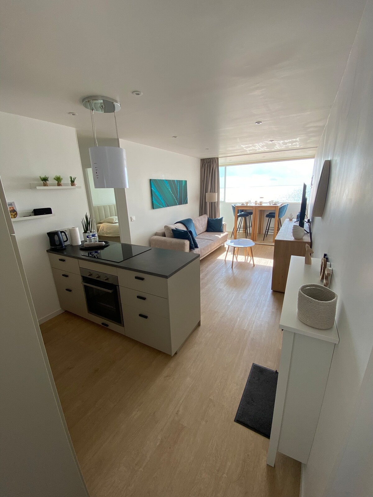 Facing the sea: enjoy an exceptional panorama. Beautiful 2-room apartment (2/4 people) renovated in 2024 – GREAT COMFORT. The beach and dune are at the foot of the apartment (no road to cross). Remarkable ocean and Île d'Yeu views from the dining area, loggia and even from your bedroom bed. Admire the sunsets as a couple, with family or friends. You have your own closed garage; ideal for your car and for storing bicycles, trailer and beach games.