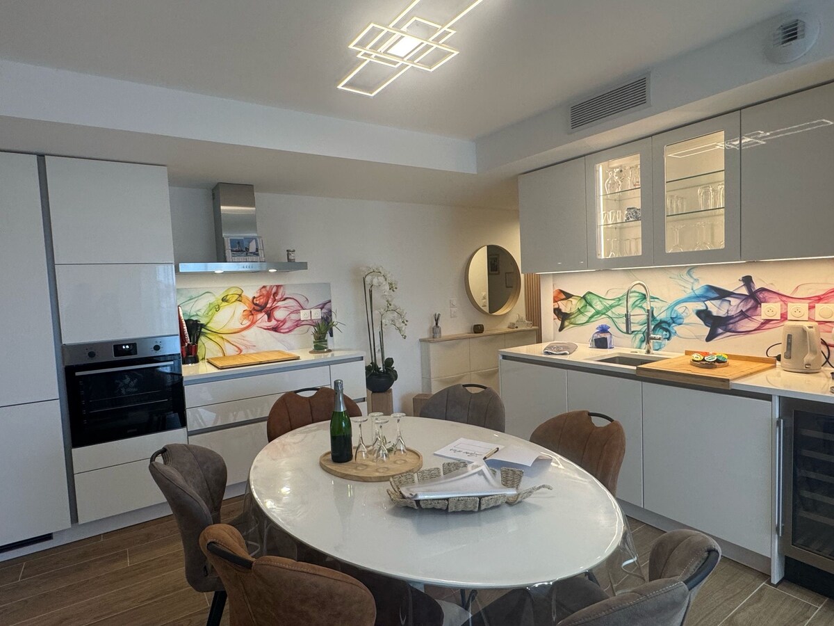 Welcome to L'Escapade Zen, a luxurious retreat where serenity meets modern comforts. Located on the seafront, close to the city center, this stylish apartment can accommodate up to 4 people. Discover a large living room, a high-end equipped kitchen, a bedroom with a queen size bed and an infrared sauna. Enjoy a moment of pure relaxation in the balneotherapy area. Wi-Fi, cable TV and Netflix Every moment in your peaceful haven invites you to escape.