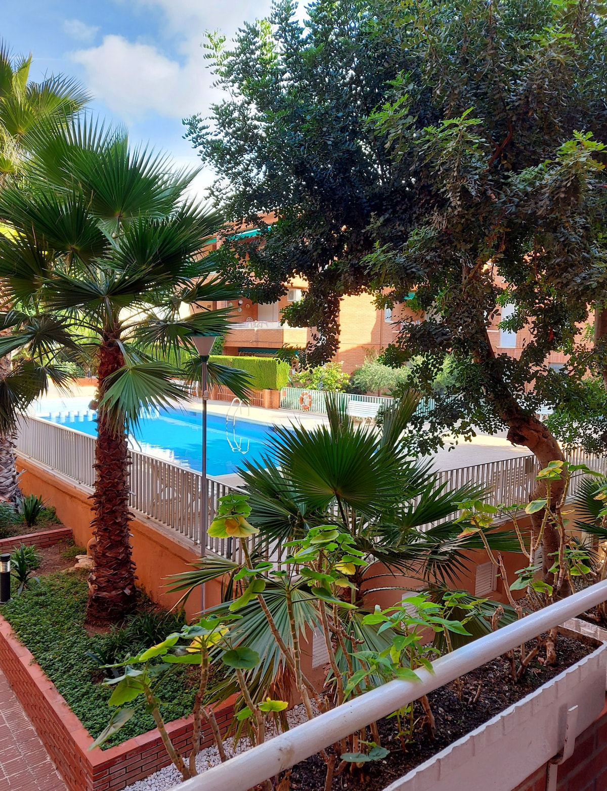 Modern apartment in Coma-ruga beach Private and family development, adult and children's pool, garden areas, two playgrounds with swings, ping pong table and basketball court all free. First floor with elevator, pool views in front, facing the sea and playground in the back. Dining room, kitchen, 2 bedrooms and bathroom with shower. Spacious terrace with table and chairs. The entire exterior floor, bright and fresh. Free WiFi A 5-minute walk from the beach.