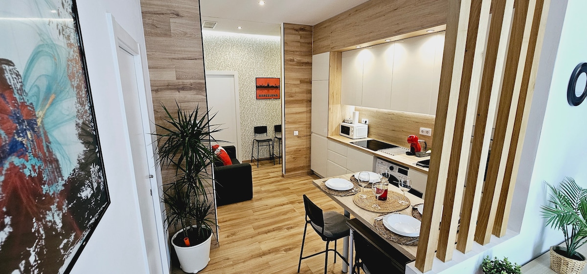 -Especially recommended for families with kids. We have toys, cards, table games... -In Badalona you get the closeness to BCN without the stress and the crowds. -Our neighborhood feels more a village than a city. Check the comments of previous guests! -Centric apartment built in 2019. -Lots of natural light, terrace with views to a park and 7' walk to the beach. -Barcelona is minutes away (10' by car and 20' by public transport, great network). -Pets welcome.