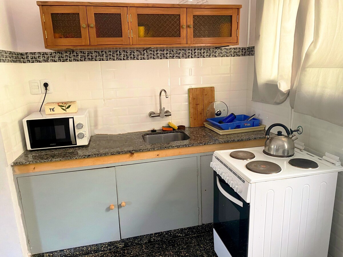 Comfortable cabin. Exclusive garden with barbecue, trees and plants. Front deck with large window and another at the kitchen entrance. Double bed with mattress to be removed. Full bathroom with a spacious shower cabin. Kitchen and gas oven, refrigerator with freezer, microwave, all necessary utensils. Natural light in all spaces. Air conditioning. Very bright. It is located on an accessible street 8 blocks from the beach with a nearby bus stop. Bed linen and towels are included.