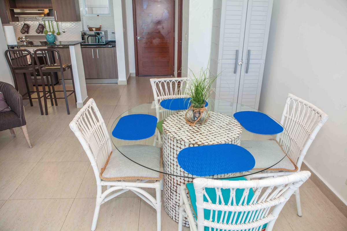 Escápate a disfrutar en familia o con amigos de la comodidad de este hermoso y acogedor apartamento equipado con todo lo que necesario para tus vacaciones. Cuenta con 1 recámara, terraza preciosa, 1.5 baño, sofá cama, comedor, una excelente cocina, aire acondicionados, WIFI y TV con cable incluido. (Máximo 4 personas). Magnífica vista a la piscina más grande de centro America. Cuenta con playa a solo 5 minutos, cancha de fútbol, tenis, baloncesto, parque infantil y toboganes de agua.