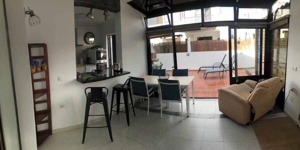 Casa Arima is a detached luxury house in the Canary Islands style, located in the best area of Playa Blanca, 200 meters from Playa de las Coloradas and a 10-minute walk from Papagayo. It is in front of the El Pueblo shopping center where there are bars, restaurants and supermarkets. It is located in a private luxury development with beautiful gardens and a large, unheated swimming pool near the house. Wifi, smart TV, air conditioning in the living room and suite room, private and free parking.