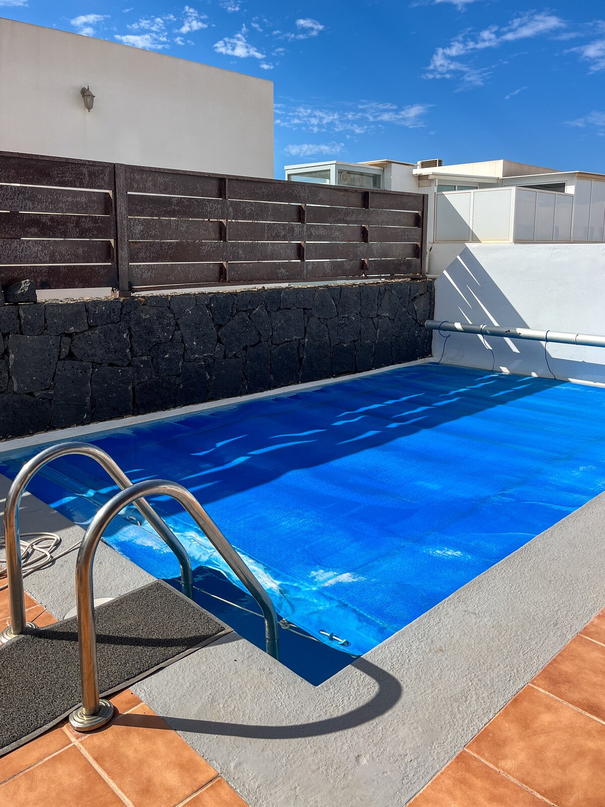 Modern, Private and Independent Four-Bedroom Villa with Four Bathrooms This spacious villa offers complete privacy and comfort, featuring a private swimming pool, outdoor shower, Jacuzzi, private parking, table tennis, air conditioning, high-speed Wi-Fi, alarm system, safe, and barbecue. Mid-stay cleaning service is included, and everything is covered in the rental price. Ideally located just a 5-minute walk from Marina Rubicón, a vibrant marina offering a wide range of amenities.