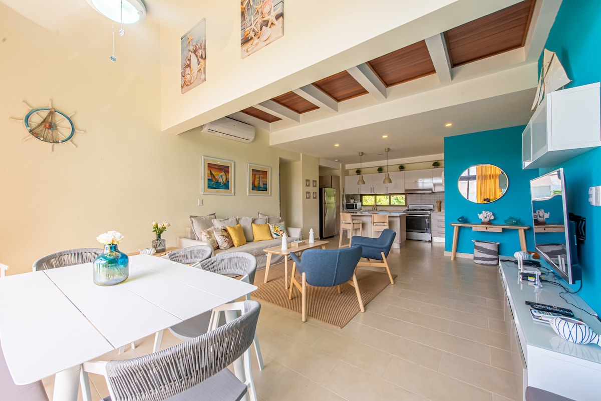 Experience style and sophistication at Mangoi 1, a condo located at the heart of Las Terrenas, just across the street from the beach and steps away from shops, entertainment, restaurants & nightlife. With the added convenience of a cleaning lady visit every other day, this condo is the perfect place for families or groups of friends looking for a beautiful and convenient Caribbean paradise getaway.