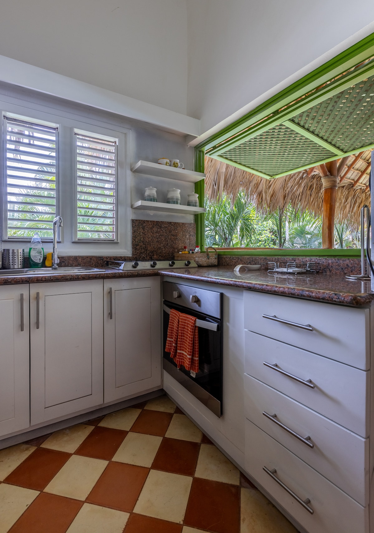 A nice, private boho-chic style villa 200 meters from the TOP beaches of Las Terrenas. The Villa is next to the exclusive Hotel Costa las Ballenas. It is a private residence with 24-hour security and direct beach access. The house has 3 bedrooms, 2 D with A/C and large en-suite bathrooms and a 60 m2 mezzanine with a queen bed and sofa bed (2 x twin) creating a large chill-out area with 52-inch Smart TV. The ground floor has a bathroom with toilet. There is an attached service room.