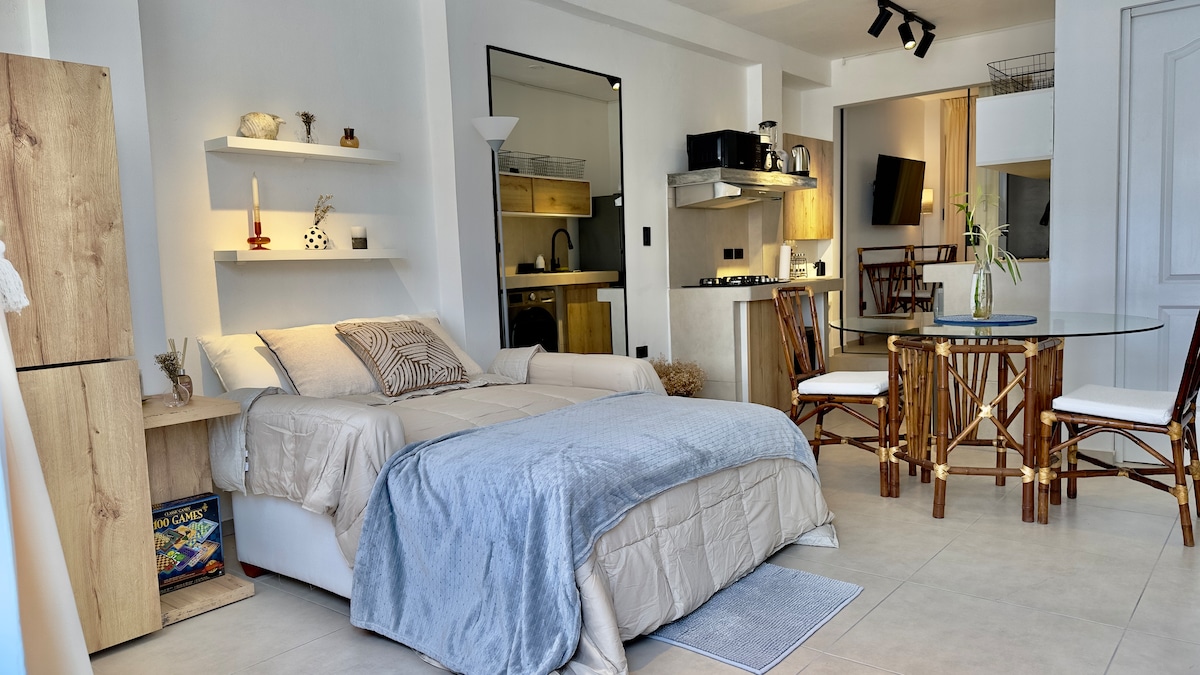 Our space has been designed to offer comfort and functionality with a touch of bohemian charm. Ideal for 4 people, perfectly equipped 1 bedroom with a comfortable bed for quiet nights, 1 Practical sofa bed, perfect for extra guests and 2 full bathrooms. We are in a central and highly rated area, within walking distance of restaurants, shops and local attractions! Happily 3-4 min from PHC beaches.