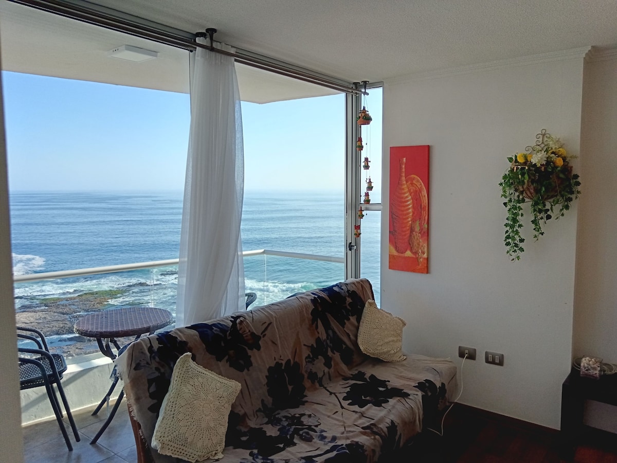 Apartment with the best view of Iquique to Cavancha beach from the 12th floor. Only 15 meters from the beach. Large bedroom with a king-size bed, American kitchen. Fully equipped! Private underground parking with remote control, the building is very safe with CCTV. Close to the "Jumbo" Supermarket, "Casino de Juegos Dreams" and "Peninsula Cavancha" where the best restaurants and bars in the city are located.