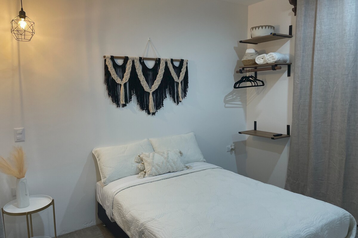 Boho Loft es perfecto para solo travelers o parejas. A tan solo unos pasos de la playa, súper ubicación, acceso a transporte público, cerca de centro histórico, el nuevo acuario, parque central, restaurantes a pie de playa.