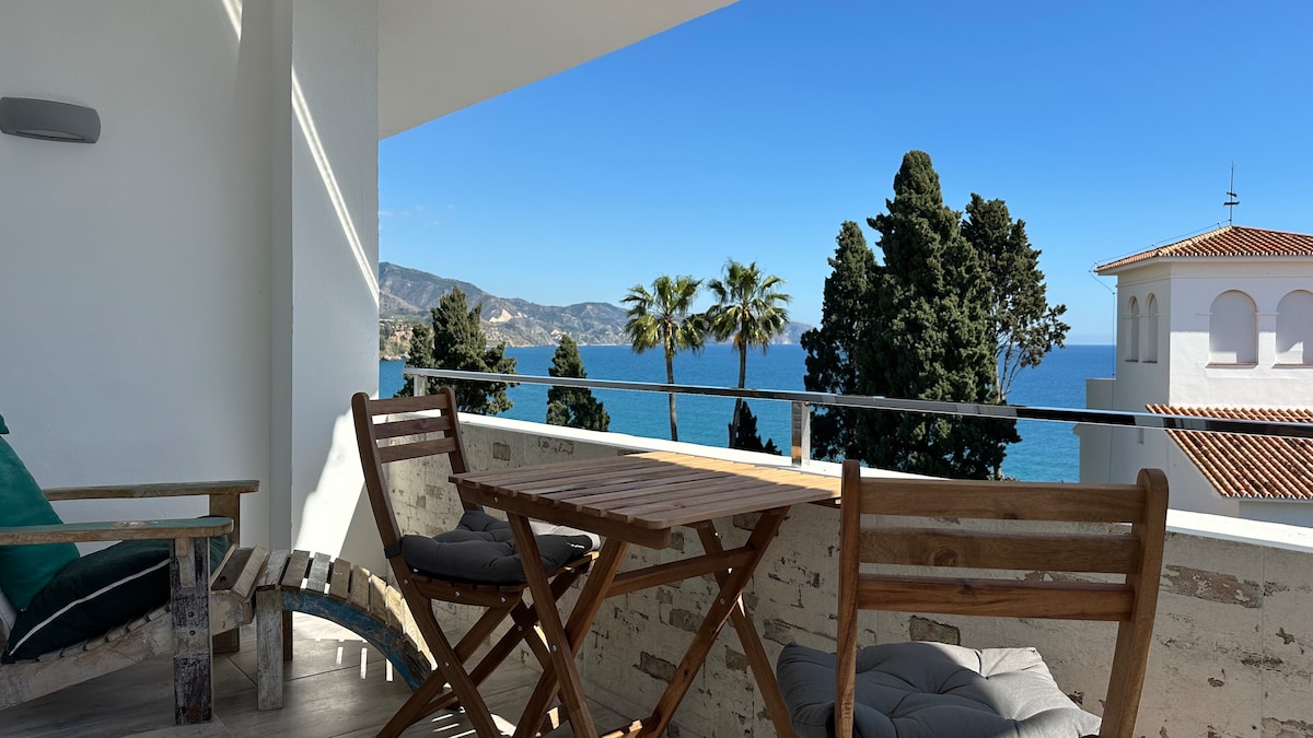 Penthouse The View Welcome to Penthouse The View, a truly exceptional retreat in the very heart of Nerja, just steps behind the iconic Balcony de Europa church. This luxurious 2-bedroom, 2-bathroom penthouse offers breathtaking, uninterrupted sea views, elegant interiors, and the perfect blend of privacy and location.
