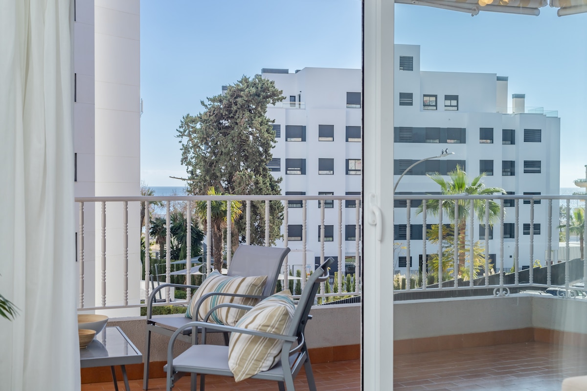 Located in the center of Marbella, just minutes to the historic downtown, puerto deportivo and right next tp the golden mile promenade. Immerse yourself in Marbella's sunshine! Step out our door and onto the beach in just 30 seconds. This newly renovated, 2-bedroom apartment boasts modern furnishings & stunning sea views from its balcony. Perfectly located in the heart of Marbella, enjoy the beach promenade & explore the vibrant city, all at your doorstep!