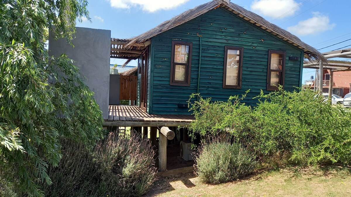 A cabin for two people, handcrafted from wood and stone, where warmth stands out, without neglecting today's comfort. On 2 floors, for two people. It has a fenced space for pets. 300 meters from Playa Rivero (beach). Located in a quiet, safe environment, surrounded by lots of greenery, in contact with nature, beautiful view of the beach from the top floor, with a terrace to enjoy the sunrise. Reception in the complex. Close to downtown, the best restaurants and services.