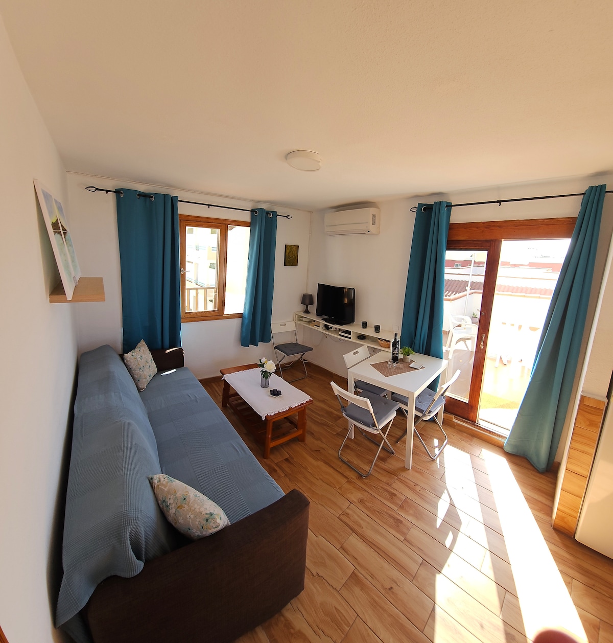 Beautiful newly renovated apartment, just a few steps from the sand of Las Burras beach. It consists of a bedroom with a queen bed, WIFI, quiet terrace overlooking the sea and the pool; modern kitchen with vitro, dishwasher and oven, and living room with sofa bed and smart TV. San Agustín Shopping Center is located 200 meters away with a supermarket, a variety of restaurants and bus stop to Maspalomas, the airport and Las Palmas. Enjoy a perfect stay in a privileged location!