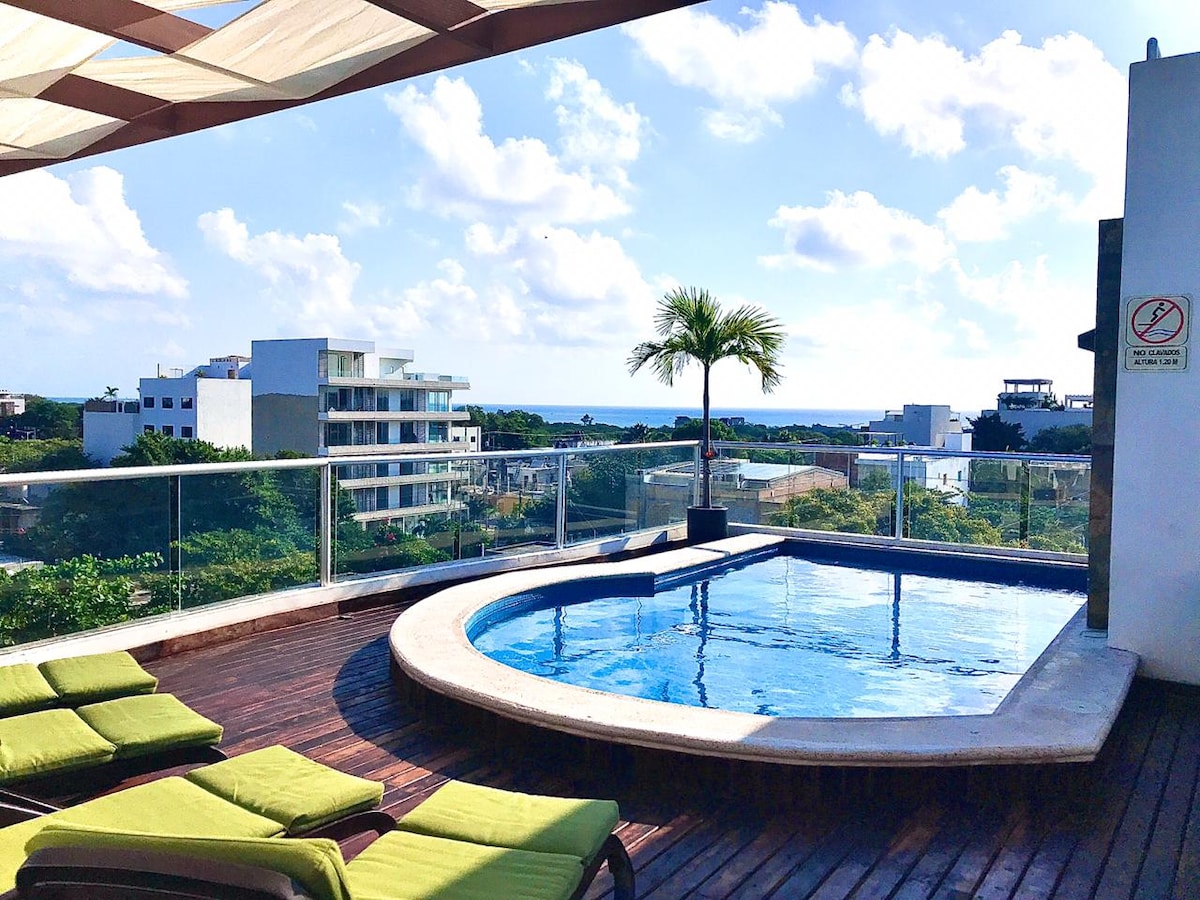 🪻Just steps from one of the most lush beaches and 5th Avenue, this modern apartment gives you an unprecedented experience. Rest in a comfortable king-size bed, enjoy your favorite movies on a Smart TV, and explore your creativity in a practical and functional kitchen. 🌿Enjoy your outdoor space on a private balcony. And if you're looking for something more special, head up to the rooftop: an infinity pool, a partial ocean view, and the radiant Caribbean sun await you.