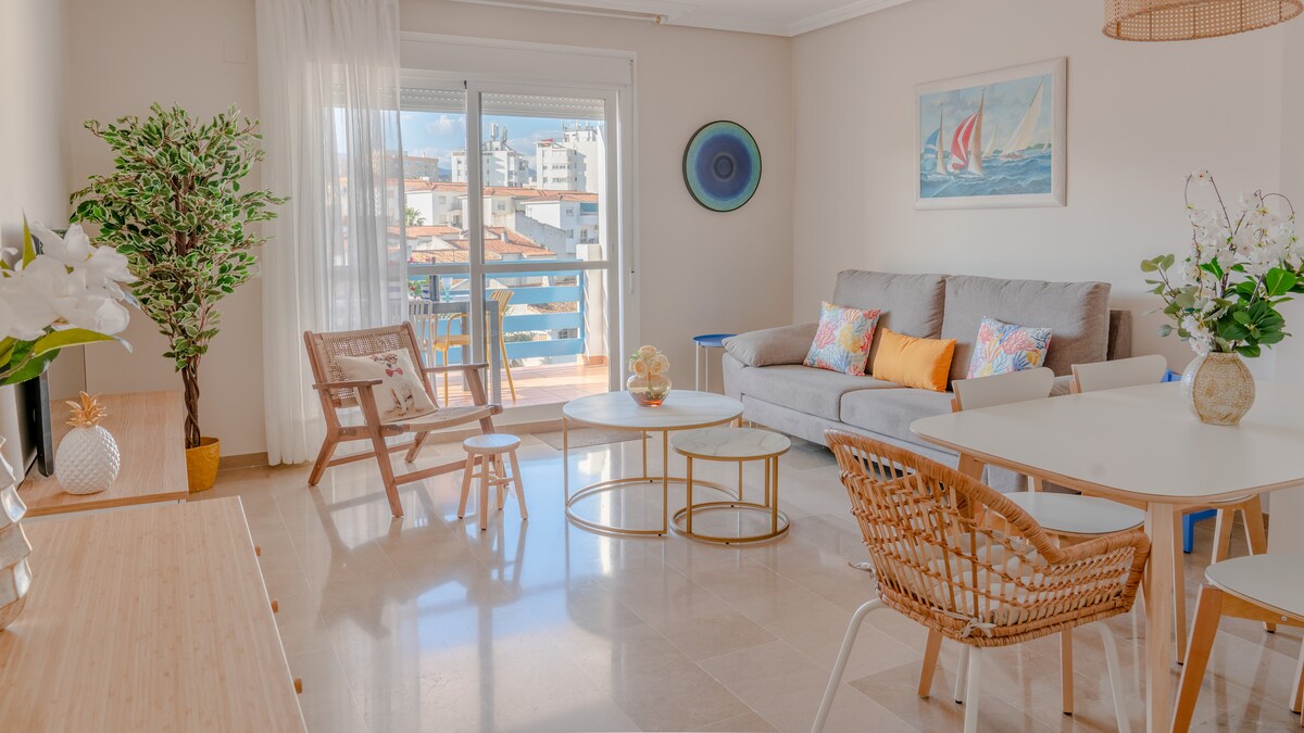 Bright, modern and comfortable 2-bedroom apartment for up to 5 guests, ideally located in the heart of Estepona Old Town. Perfect for families, couples or remote workers, with two bedrooms and a sofa bed in the living room, just a 5-minute walk from the beach and promenade. Ideal for weekly stays — professional cleaning included for stays of 7 nights or longer. No car needed — everything is close and easily accessible.