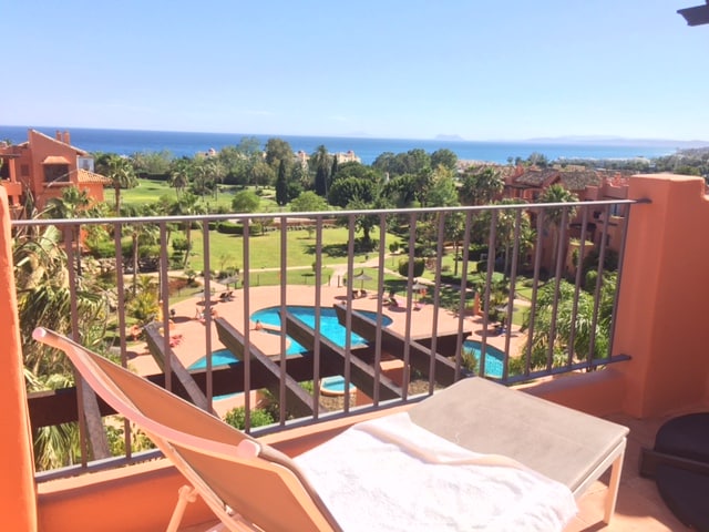 This Contemporary Townhouse beautifully decorated with big terrace spaces, sea views and private jacuzzi. Located in one of the most exclusive 5 star frontline communities just outside Estepona with direct access to the beach, Olympic size swimming pool as well as a smaller pool for the younger family members. The community also have a state of the art spa with hammam, sauna and indoor pool with gym. This is the relaxing stay anyone would want for their holiday!