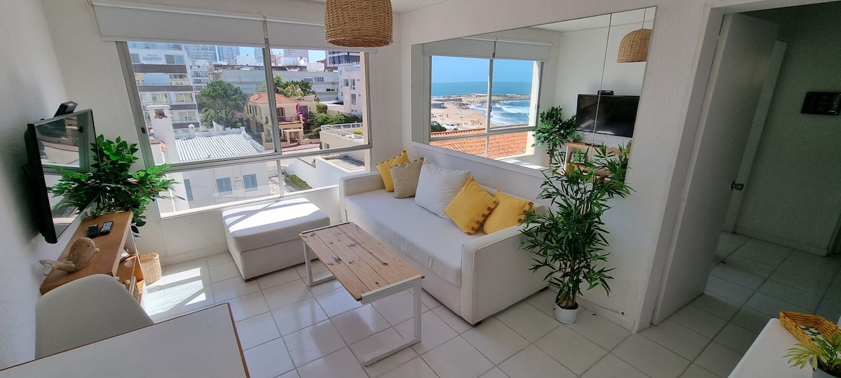 Cozy condominium with breathtaking views of the Punta del Este Marina, Gorriti island and Playa La Mansa. Located just one block from the ocean, this elegant condo offers a superb stay for the traveler who values the traditional architecture of those buildings that in the '60 emerged in La Peninsula. From March to November we offer large monthly discounts. Please ask about them.