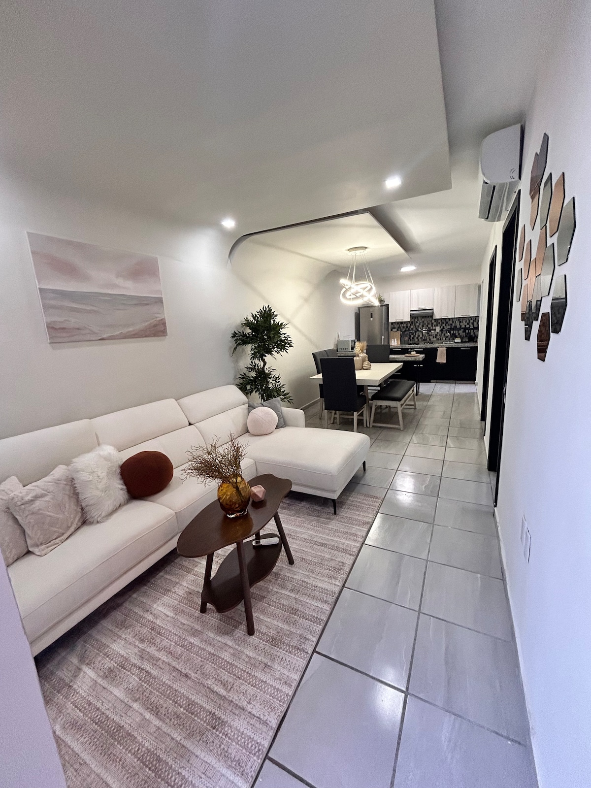 Departamento en planta baja , habitaciones climatizadas rodeado de atractivos turísticos, restaurantes, plazas comerciales , museos, a 3 minutos de playas y a 2.5 km del Acuario de Veracruz (A una cuadra del Carnaval y maratones) -Sala y comedor con smart tv, cocina integral con vista a un pequeño jardín central privado. -Recamara principal con cama king size , baño, vestidor y smart tv. - Recamara secundaria con cama matrimonial y closet. -Garage para un auto con portón eléctrico.
