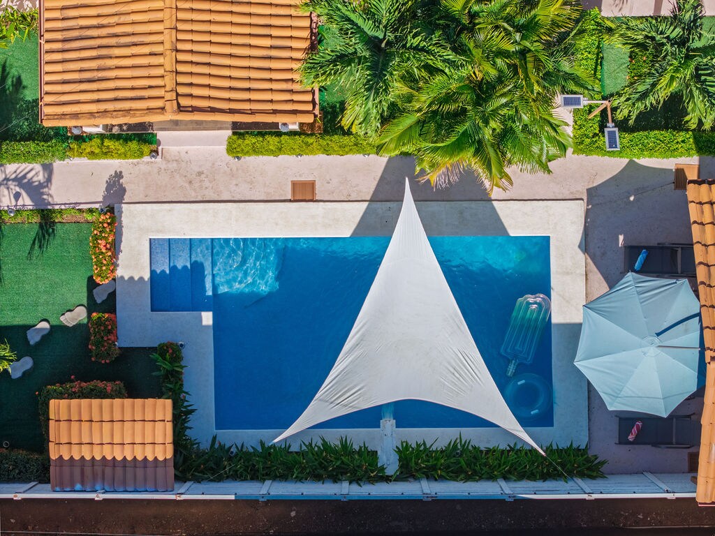 Private colonial style villa with pool in the courtyard, the rooms all have AC and private bathrooms. The house comes equipped with beach towels, beach chairs and BBQ. We have a total of 4 bedrooms , 3 have its own full bath and 1 has a shared bath and uses the guest 1/2 bathroom . We have 2 rooms with king beds, 1 room with a queen bed and one room with 2 indivudual beds plus a sleeping couch . The house sleeps comfortable 8 persons but could also be used up to 10 .