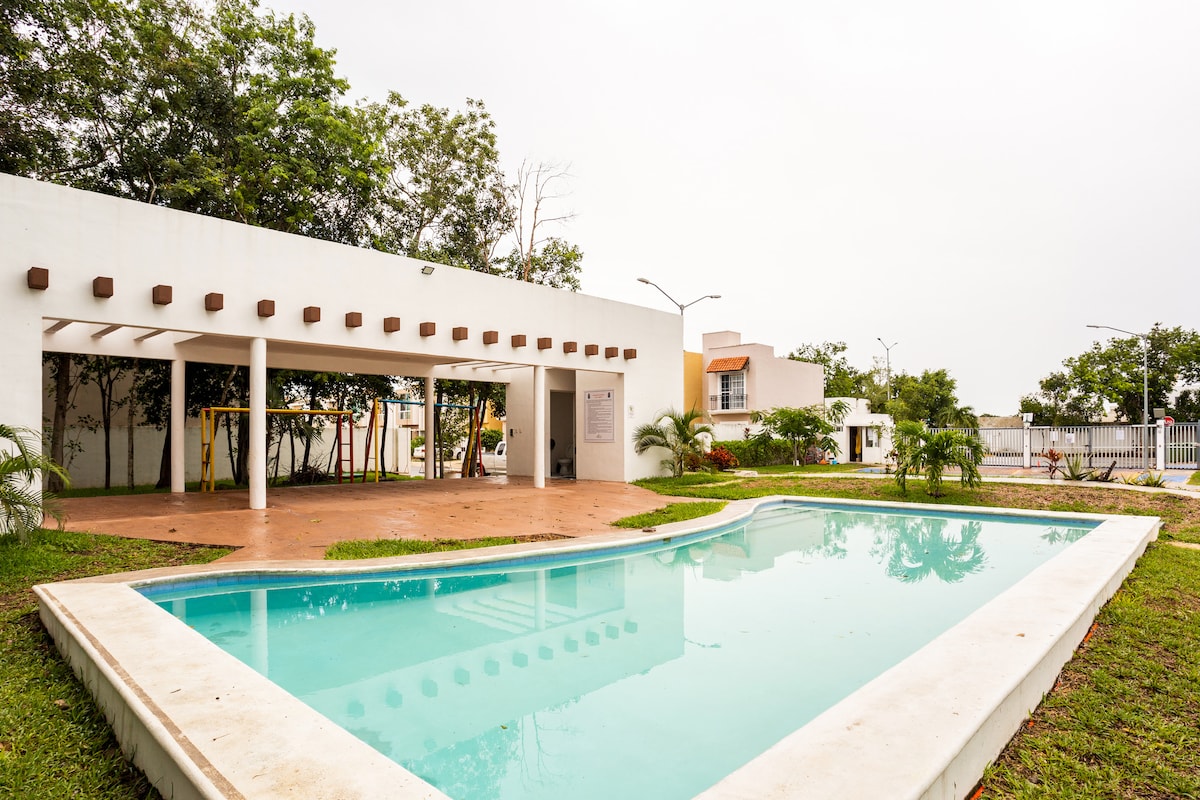 Enjoy a safe and quiet space. If your ideal is to save on lodging and spend on tours and fun, this place is for you. It is 15 minutes from the beach and 5th Avenue by car, equipped with a double bed and sofa bed, internet, air conditioning, kitchen, pool and 24-hour security. A clean place with everything for a good rest and a happy vacation