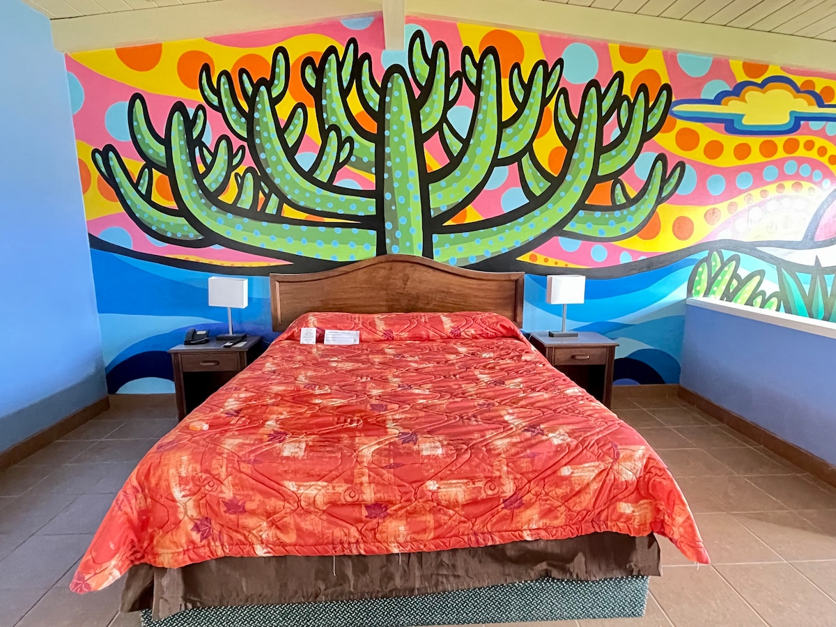 POOL AND JACUZZI ARE OPEN! Located along the hillside of our property with amazing canyon views, this unit is rustic, but has the essentials. One Queen bed with private bathroom, complimentary WiFi in front of white house. Check-in is at 4 p.m., but you can arrive at 11 a.m. Check-out is at 11 a.m., but turn in room keys and stay until 4 p.m. Our restaurant is open 7 days a week from 9 a.m. to 8 p.m. Bringing food or drinks is not allowed since we have a restaurant. No pets allowed.