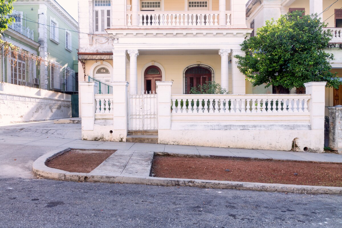 Colonial house in Vedado, center of the center. Walking distance from dozens restaurants, Presidentes Avenue and 23rd Avenue. The house has 2 floors customers, It has an independent entrance, in each room there is a mini bar, a safe, air conditioning, 4 rooms Whit private bathrooms. It also has a beautiful and relaxing terrace with a nice view to the street. The terrace where you can enjoy smoking a cigar WiFi connection only to 50 meters. Gourmet Breakfast or Vegan Breakfast for only 5 CUC.