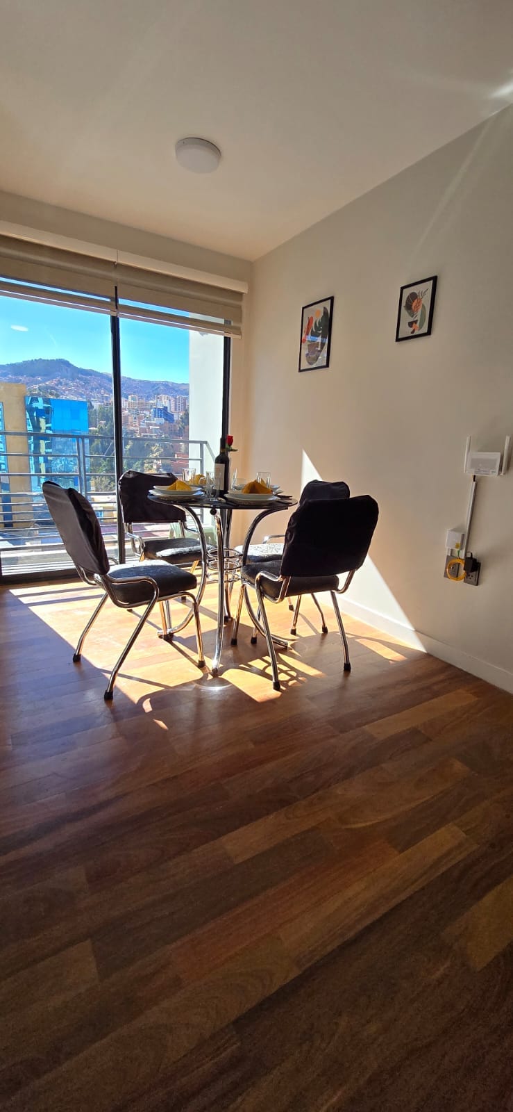 El departamento es encantador! La habitación cuenta con material de línea hotelera para un descanso confortable, la cocina y sala cuentan con todas las comodidades necesarias. La iluminación es perfecta! El departamento se encuentra en una zona completamente segura y centrica, a pasos de supermercados, embajadas, hospitales, bancos, cine, estaciones de teleférico, cafeterías, centros comerciales, bares de rock, discotecas, etc.