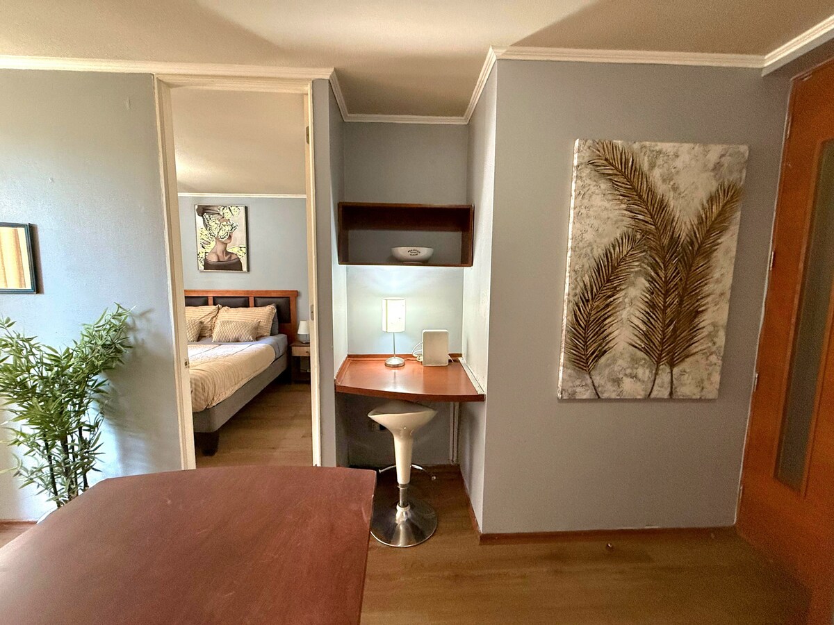 Disfruta este céntrico depto de 1 dormitorio + sofá cama ¡a un paso de todo!: calles principales, transporte (buses y metro), lugares turísticos, barrios bohemios (Lastarria, Barrio Italia), hospitales, plazas y parques. Ideal para estadías sin preocupaciones: tendrás todo lo necesario para que te sientas como en casa. Su vista al sur la hace fresca en verano aun sin aire acondicionado y ¡sin ruido exterior! las ventanas termopanel permiten descansar plácidamente. ¡Agrega desayuno si lo deseas!