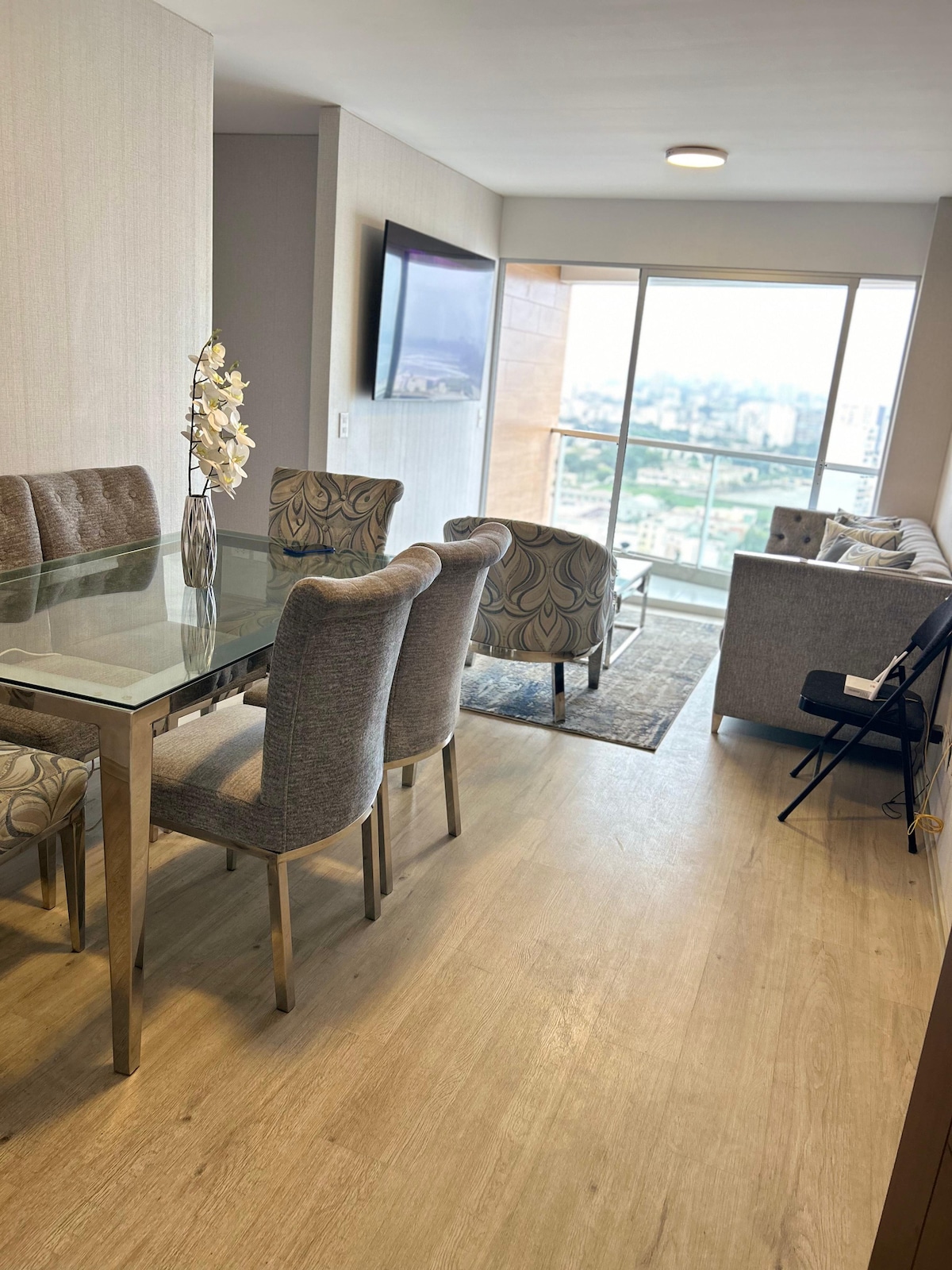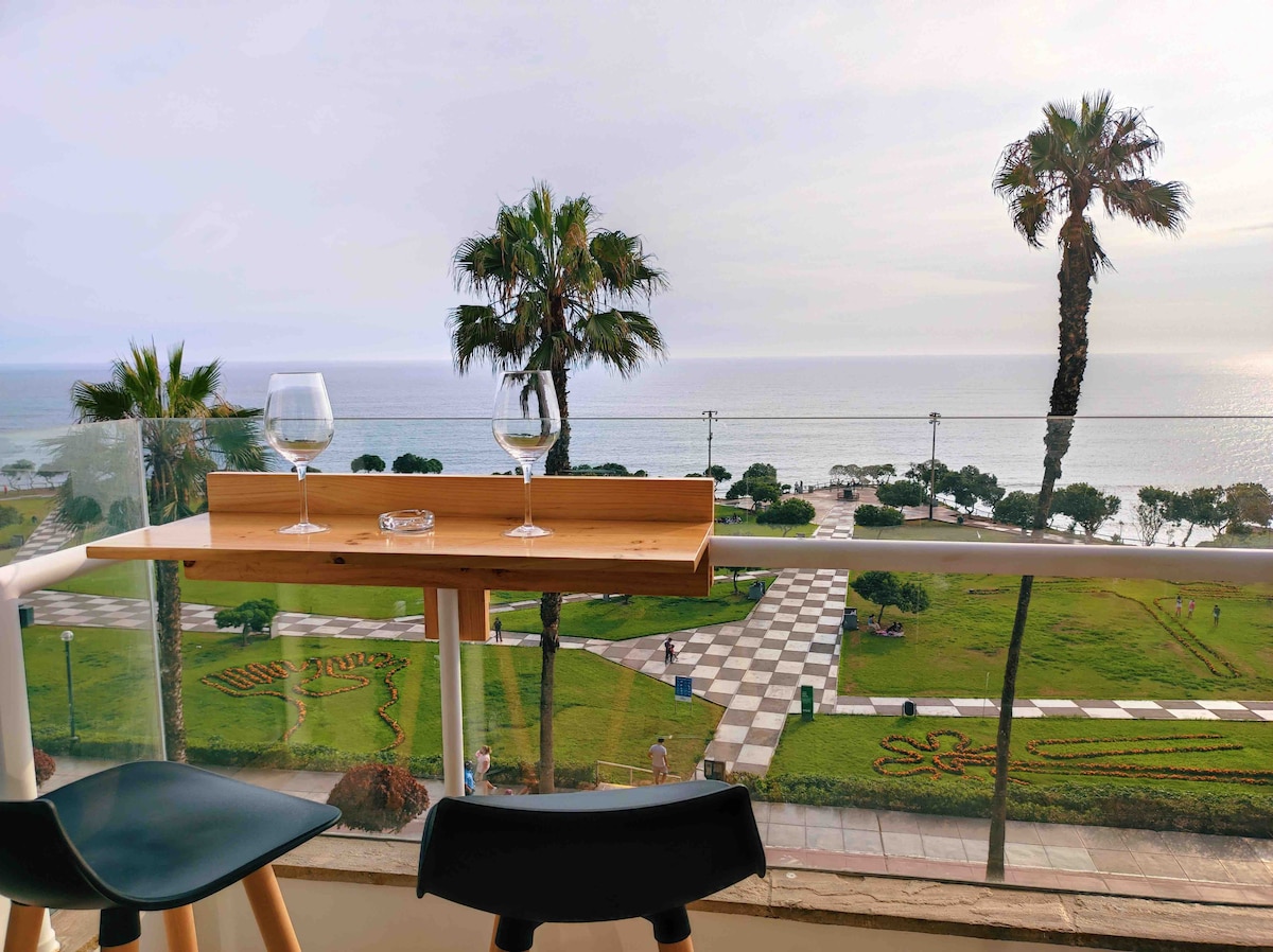 Super well located in MIraflores. Ideal for long stays and working nomads. Beautiful and quiet neighborhood. 1 block from boardwalk and best foodie street in Lima. Cozy, warm, modern, comfortable and very bright. Excellent Wifi! Fully equipped kitchen. Exterior sights and ocean view. Concierge 24hrs. A step away from bars, restaurants, malls, markets, cinemas, galleries and theaters. Beautiful parks with sea sights and outdoor activities. Walking distance from the coolest spots of Miraflores.