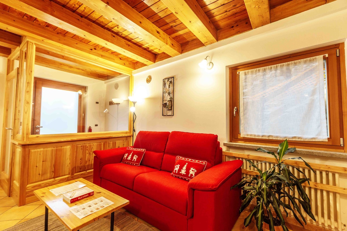 Elegant and private apartment located 8 minutes by car from the center of Aosta, surrounded by greenery and the tranquility of a small alpine village. The accommodation consists of a bathroom, a bedroom, equipped with a comfortable double bed, a living room with a sofa bed, also double, and a small functional kitchen. You can park your car for free on the property and use the private garden at any time. CIR 0093