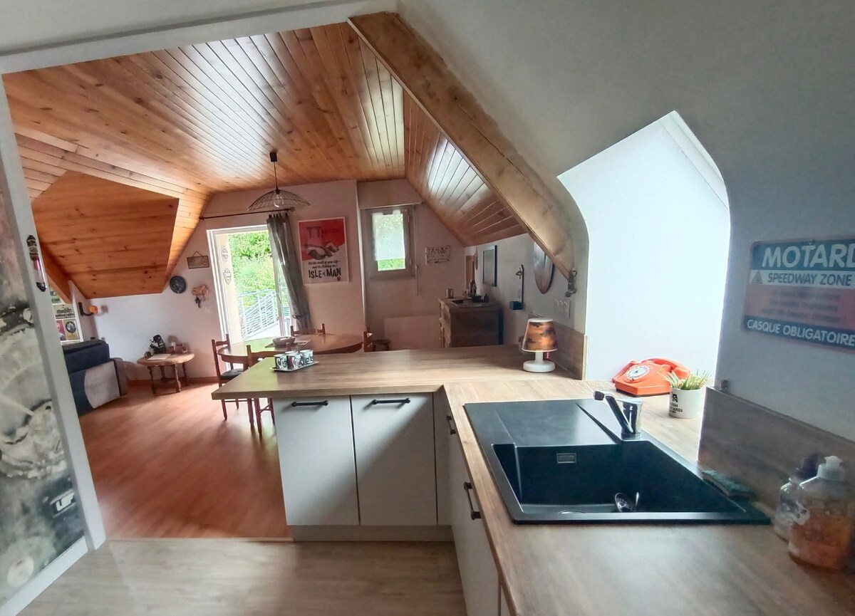 "The Saint Colomban welcomes you in the heart of the village of Le Ponthou, at the gates of northern Finistère. A water, picnic and games area enhances this small green village of the Douron valley, 20 km from the beaches of Locquirec, 16 from Morlaix and 30 from Huelgoat. This homestay cottage has independent access and terrace. Bikers will appreciate the decor to stay in the road trip and some services.