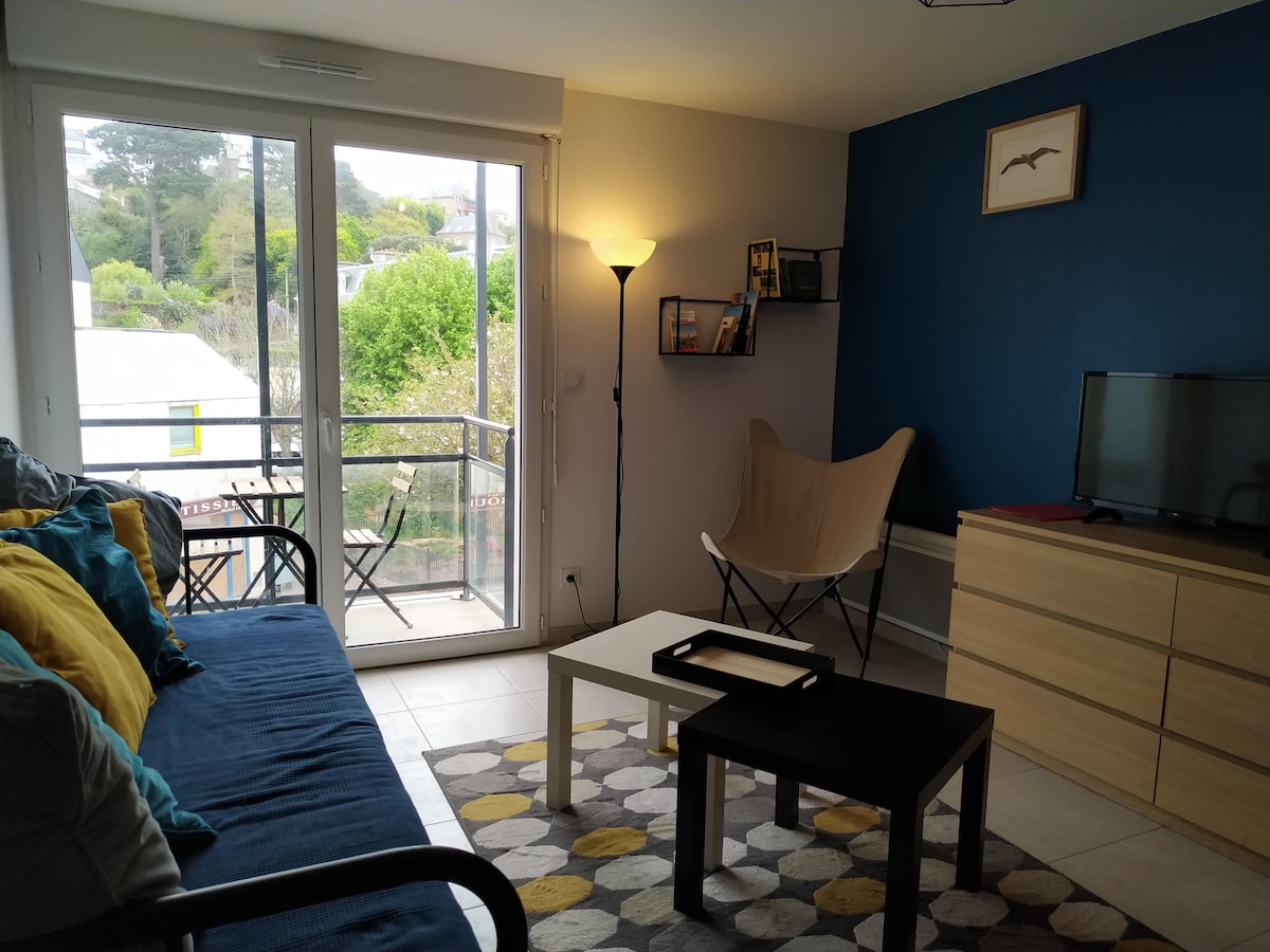 A 10-minute walk to the city center, you will enjoy in this independent studio, located on the ground floor of our house, a haven of peace in a small cul-de-sac subdivision on the rooftops of Lannion. A private terrace with garden furniture, parasol and BBQ complete this accommodation.