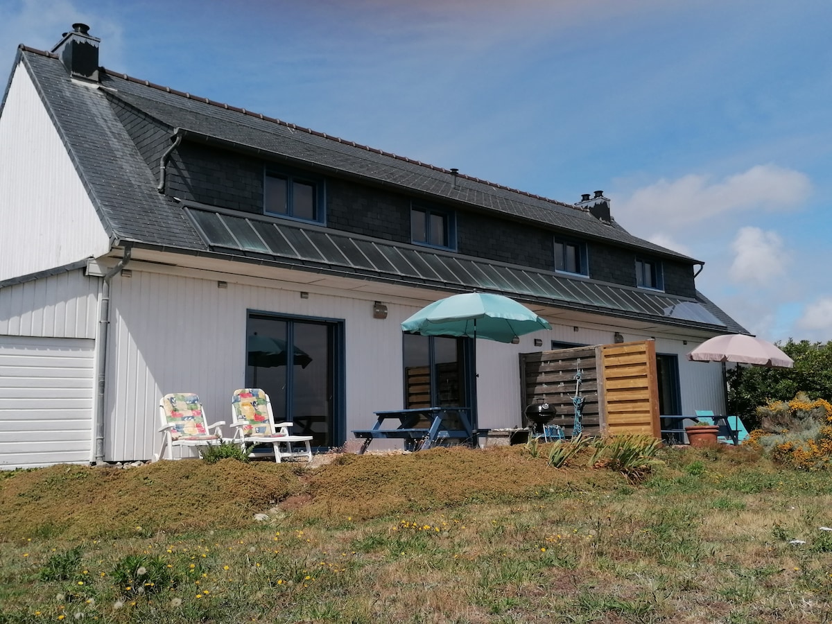 Quiet house, ideal for hosting families (5 people), independent, large private terrace and garden. Contact us for the rental of the 3rd bedroom, access from the outside with toilet and bathtub, see photos. €40 per night. Located 13 km from the ocean, ideal location for visiting Finistère from North to South, West to East. At the end of the world! Menez Hom (330 m) 5 minutes away, offers a 360-degree view and gives a foretaste of everything that awaits you! Rich and intense cultural life...