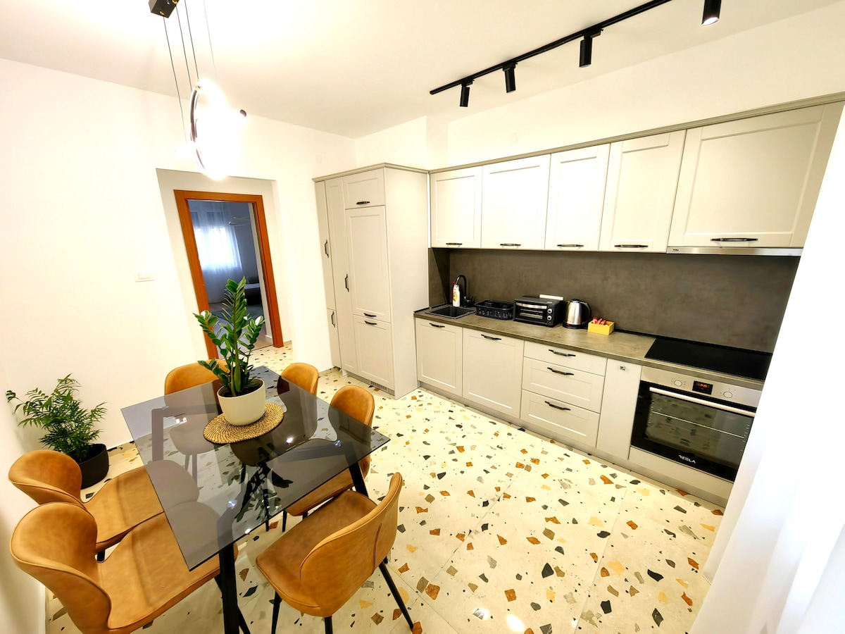 This stylish place to stay is perfect for group trips. Apartment is in ideal location in the most green and beautiful area. It has 80m2, two bedrooms, bathroom, toilet, two terrasses and free parking spot. In the building you can find pharmacy working 24/7 lots of supermarkets, caffes, banks, more than two ATM. It's 700m from the center of the town, less than 10 minutwalking distance from the river. All important spots in the town are very close. There are two bus stations and taxi stations.