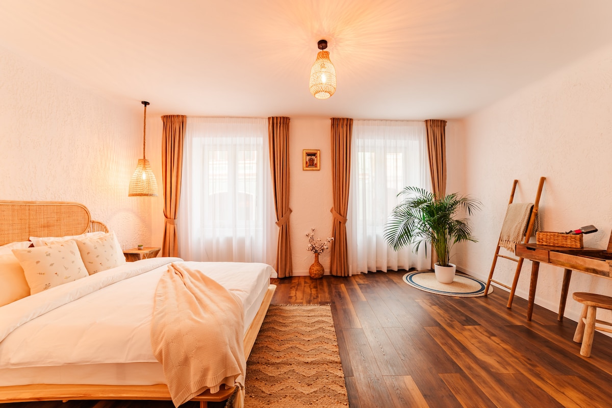 ROOM “88” – A Refined Blend of Modern Design and Comfort As part of an exclusive collection of three designer apartments, ROOM “88” seamlessly integrates contemporary aesthetics with state-of-the-art technology. Thoughtfully designed for a warm and inviting ambiance, it features plush carpets, fully adjustable LED lighting, and central heating for year-round comfort. Situated within a lush garden at the foot of Mount Tâmpa, it offers a tranquil retreat just a 5-minute walk from the forest.