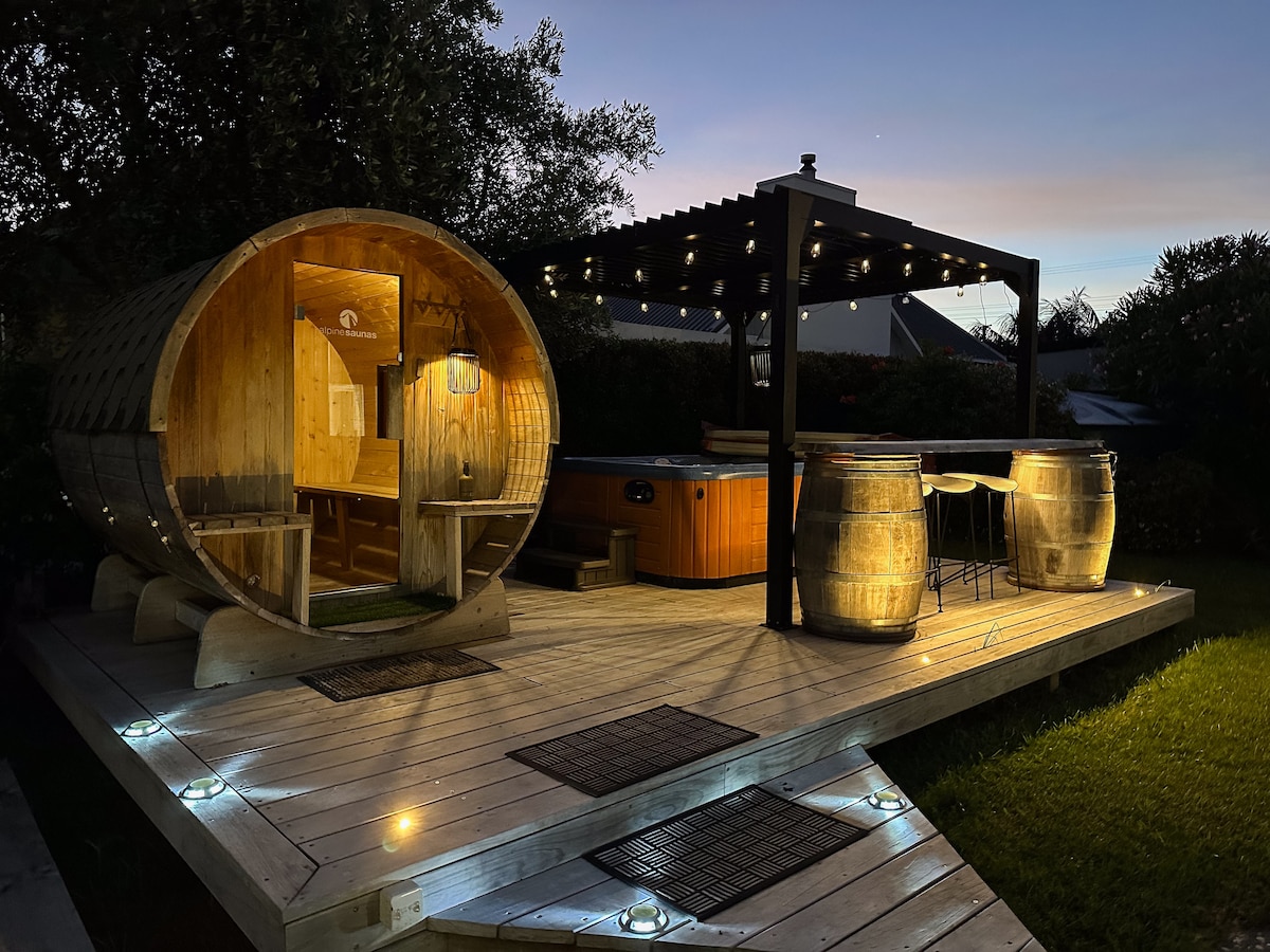 Sauna + Hot Tub + Sleepout by Omaha Estuary