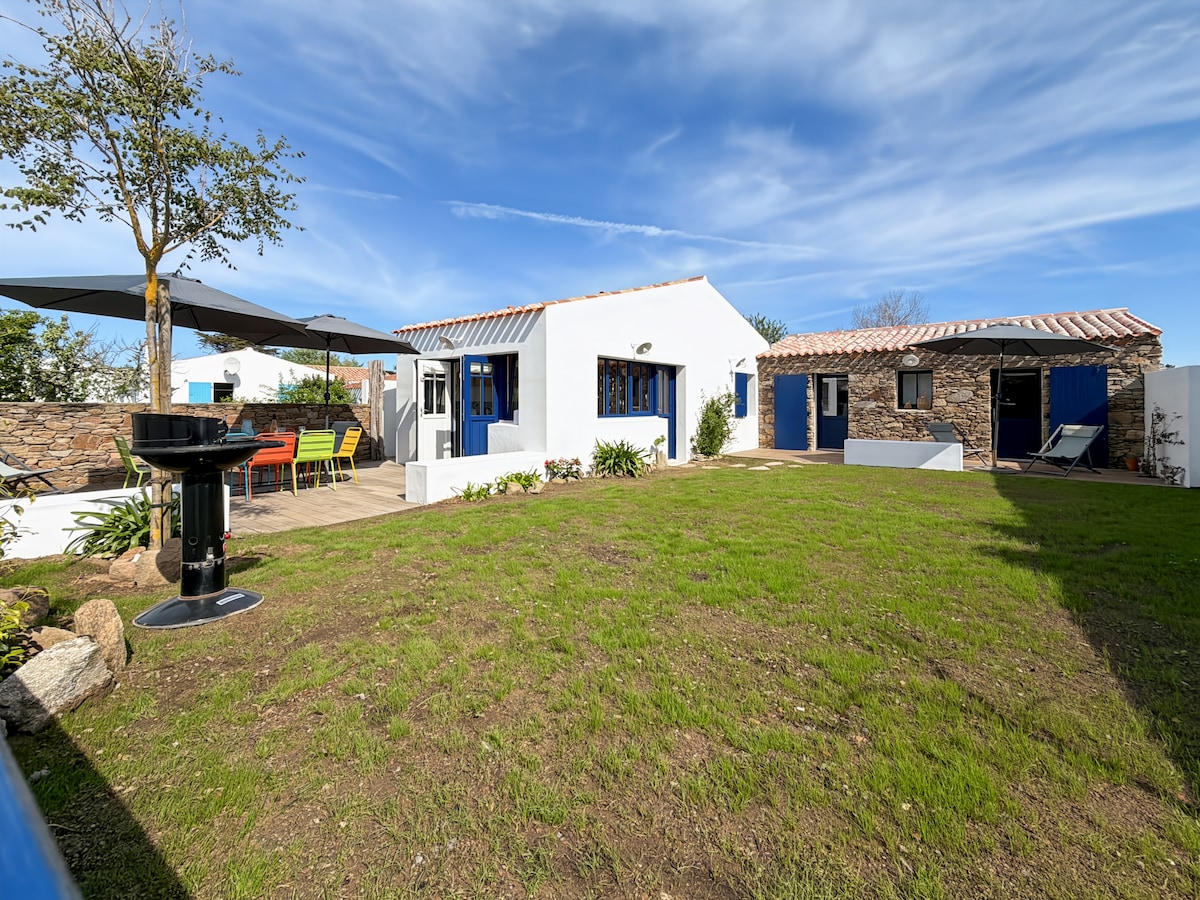 Keep it simple at this peaceful place in the center of the island. 45 m2 house, ideal for 2 adults but can quite suit 4 (with surcharge) Minutes from Port Joinville by bike 🚲 and 15 minutes from the beach 🏖️! Sheets and linen are provided. ⚠️ pets aren't allowed. See you soon. ☺️
