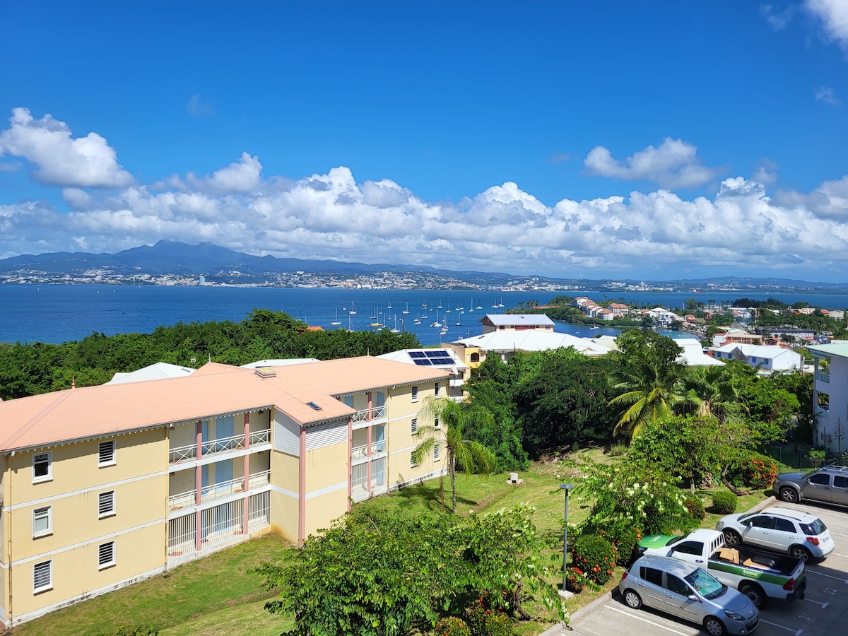 Studio with separate bathroom and toilet, but above all an amazing view of Fort de France Bay. Alamanda 12, located on the 1 st floor of a quiet residence, welcomes you for a minimum stay of 7 days. Parking is at the entrance to the residence. Located 4 minutes' walk from the beach, 50 m from the bakery and 100 m from the first restaurant The residence is located 800 m from the Creole Village of Pointe du Bout where restaurants, casino and entertainment await you.