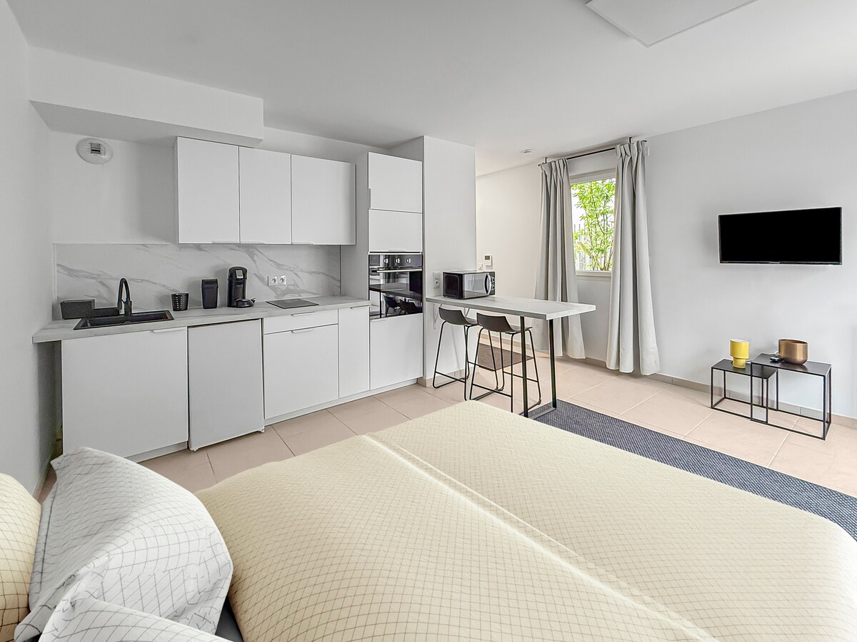This modern 30 m² studio is perfect for a stay in Poissy. It offers a private terrace with outdoor furniture to enjoy the sunny days, a comfortable living room with a double bed, a fully equipped kitchen and a bathroom with a walk-in shower. Ideal for 2 guests, it also includes private underground parking. Enjoy a quiet and well-located place, close to the city center, shops and transport.